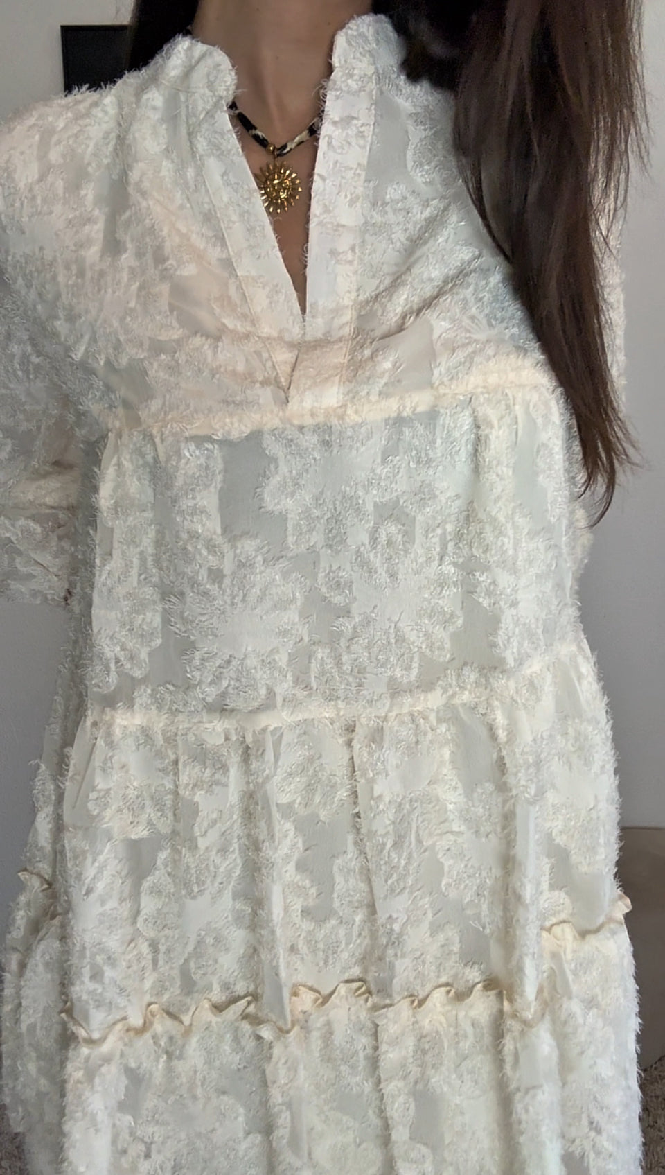 Pour un côté raffiné et féminin, elle est en transparence au niveau des manches. Cette robe est idéale pour la saison, légère, fluide et douce.