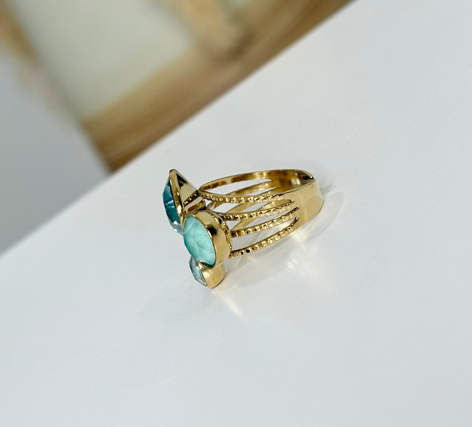 - Bague ornée de cristaux Swarovski couleur émeraude