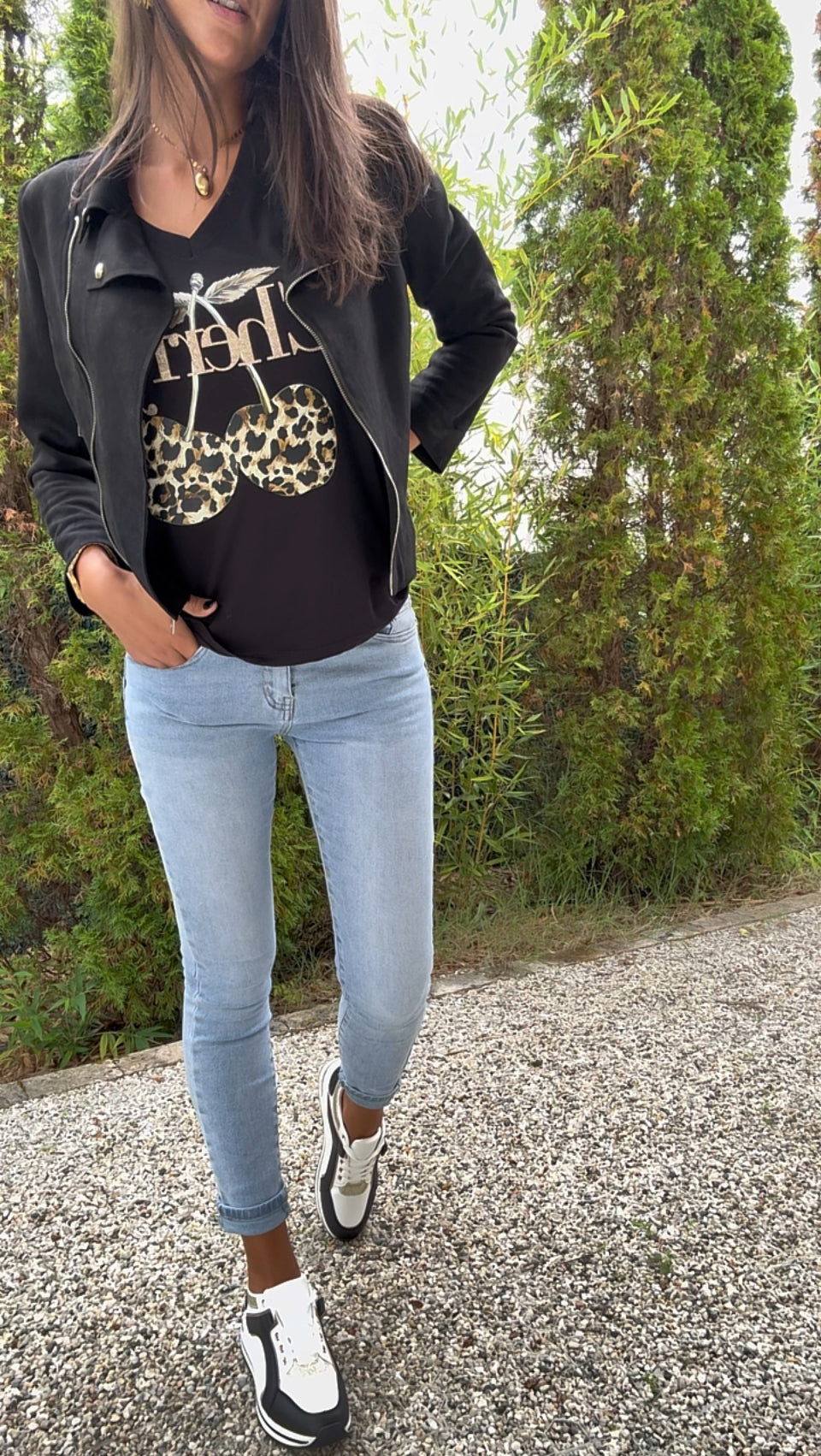 - Couleur blanche, empiècements noires et dorées