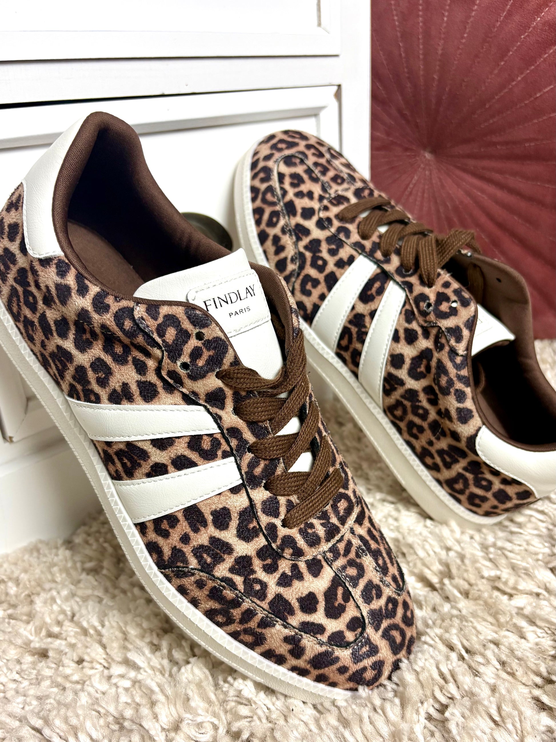 - Motif léopard et bandes latérales blanches sur le coté